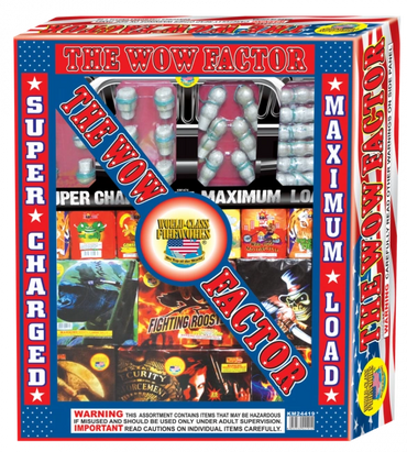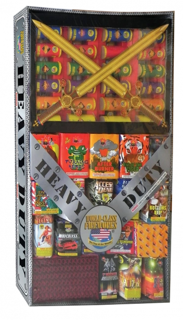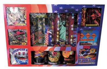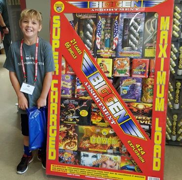 Our largest assortment. There is nothing small about the Biggen! 9 500 gram cakes, 12 large 200 gram cakes and 5 sets of different artillery shells. If you are looking for everything you need to have the best show on the block then this is it. This assortment is 5 feet tall and 3 1/2 feet wide. Bring the truck!